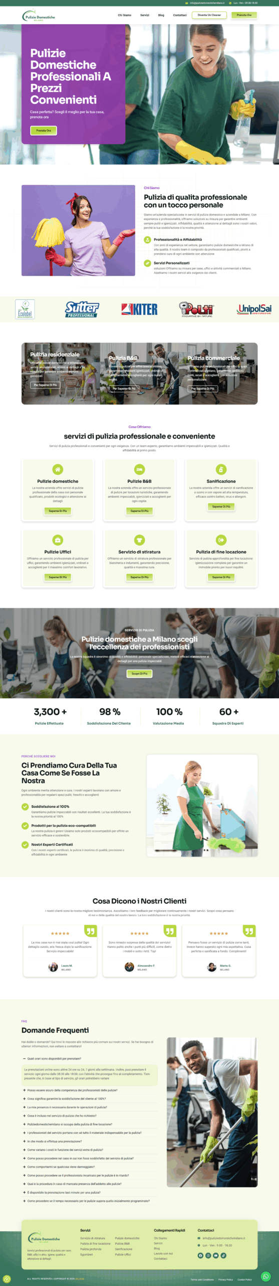 The Pulizie Domestiche Milano project was developed for a local Italian cleaning service specializing in residential and deep-cleaning solutions across Milan. Built on WordPress, the website was designed to clearly communicate the company’s offerings, increase local visibility, and drive customer engagement. Leveraging Elementor and Advanced Custom Fields (ACF), I crafted a fully responsive and easily manageable site structure with custom content blocks, service listings, and lead capture forms. The result is a sleek, SEO-optimized platform with fast load times, intuitive navigation, and a user-focused design. This project sharpened my skills in custom WordPress development, performance optimization, and localized SEO strategy for service-based businesses.